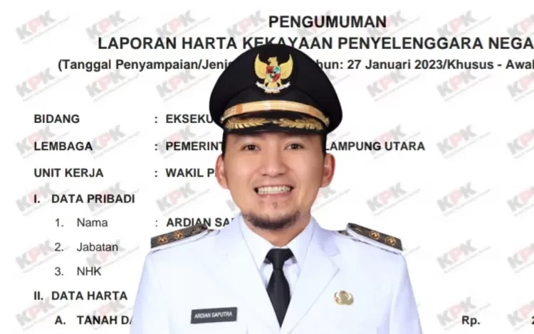 LAMPURA | PotretKasus.com – Berikut ini adalah daftar harta kekayaan Wakil Bupati Lampung Utara, Ardian Saputra versi LHKPN.