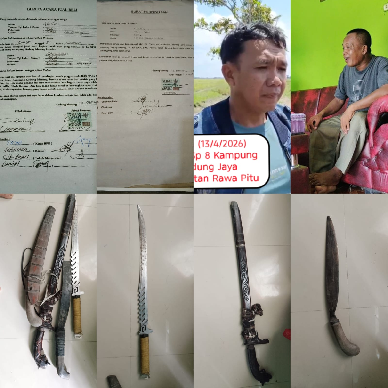 Selaku pelapor Yusnadi Karim, memiliki sebidang tanah, seluas kurang lebih 8 Ha² yang terletak di wilayah Sp 8 Kampung Gedung Jaya, Kecamatan Rawa Pitu, Kabupaten Tulang Bawang, yang di beli pelapor sebelumnya sekira bulan Maret 2023, merasa memiliki lahan tersebut Pelapor, mengelola lahan sawah dan ditanami padi, dengan berjalannya waktu sekira tanggal 15 November 2024, diketahui BD Cs tiba-tiba menggarap lahan milik Pelapor dengan cara menggunakan alat berat, dan menanam tanaman jenis Padi, yang dimana atas tindakan terlapor BD Cs, dilakukan Tanfa ijin sebelumnya kepada Yusnadi Karim selaku pelapor, bahkan klaim sepihak yang di lakukan oleh terlapor BD Cs terhadap lahan milik Yusnadi Karim, adalah milik mereka.