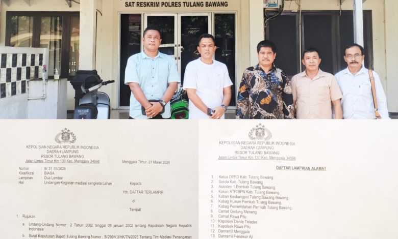 Tulang Bawang_ Sengketa lahan sawah yang viral di Kabupaten Tulang Bawang memasuki babak baru. Kepolisian Resor Tulang Bawang menggelar mediasi sebagai langkah konkret meredam konflik yang berpotensi meluas di tengah masyarakat. Senin (30/03/2026)