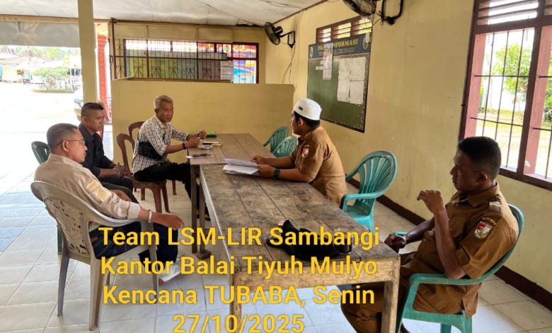 TULANGBAWANG BARAT_ Team LSM-LIR sambangi kantor Tiyuh (DESA) mulyo kencana, kecamatan Tulangbawang Tengah, kabupaten Tulangbawang Barat, Lampung. Disambut langsung oleh Sekertaris Tiyuh setempat di dampingi salah satu kepala suku (RK) sekitar jam 10,12 Wib, Senin 27 Oktober 2025.