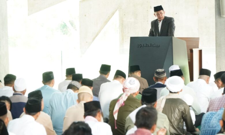 TUBABA – Penjabat Bupati Tulang Bawang Barat M. Firsada, Forkopimda, Anggota DPRD,Sekretaris Daerah, Asisten, Staf Ahli, Kepala OPD, para ASN, Tokoh Agama, Tokoh Pemuda, Tokoh Masyarakat, OKP, Ormas, dan Masyarakat, melaksanakan Sholat Idul Fitri 1445 H/2024 M di Masjid Baitus Shobur Kompleks Islamik Center Tubaba. Rabu (10/04/2024)
