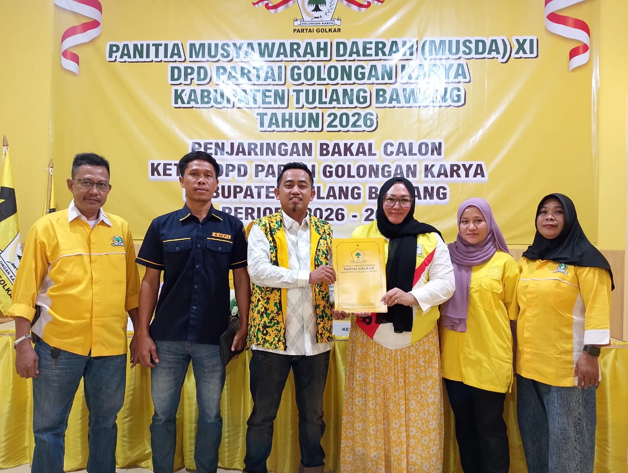 TULANG BAWANG_Panitia Resmi membuka penjaringan balon Ketua DPD partai Golkar kabupaten Tulangbawang untuk periode 2026-2031 yang berlangsung 27 April 2026 di kantor DPD II Partai Golkar tuba dini hari.