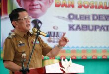 TULANG BAWANG BARAT | PotretKasus.com – Penjabat Bupati Tulang Bawang Barat Drs. M. Firsada M.Si Menghadiri Sosialisasi Pemilu Serentak Tahun 2024 kepada pemilih pemula di aula SMK N 1 Tuba Tengah. Senin (25/09/2023)
