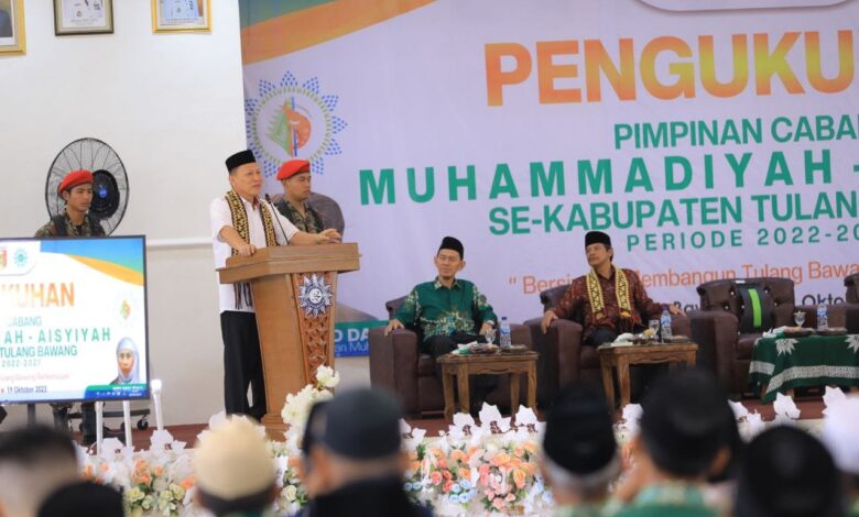TULANG BAWANG | PotretKasus.com – Penjabat Bupati Tulang Bawang Drs Qudrotul ikhwan MM Menghadiri Pengukuhan Pimpinan Cabang Muhammadiyah dan Aisyiyah Se–Kabupaten Tulang Bawang Periode 2023 – 2027 Kamis (19/10/2023)