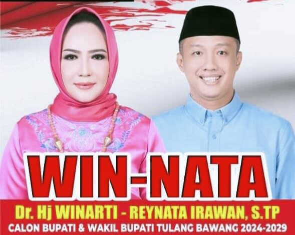 Kini Dr Hj Winarti kembali maju untuk priode ke 2 dampingi Rey-nata Irawan calon Wakil Bupati Tulang Bawang asli Putra Daerah mengggala di usung Partai PDI Perjuangan dan Partai Gerindra.