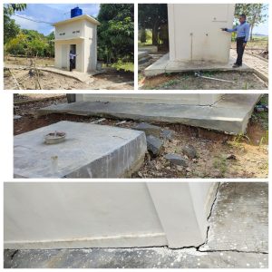 Disisi bangunan sumur BOR tersebut, lantai bangunan sudah Retak dan tidak tepat sasaran. Sementara dalam pantauan Team Investigasi LSM-LIR,”Hartono dan rekan-rekan, bangunan proyek sumur BOR tidak ada manfaatnya untuk masyarakat sekitar akibat jauh dari permukiman warga di jalan Pemokou kecamatan Menggala, kabupaten Tulangbawang, lampung dan dari awal pembuatan proyek sumur BOR tersebut tidak memasang Plank Anggaran proyek.